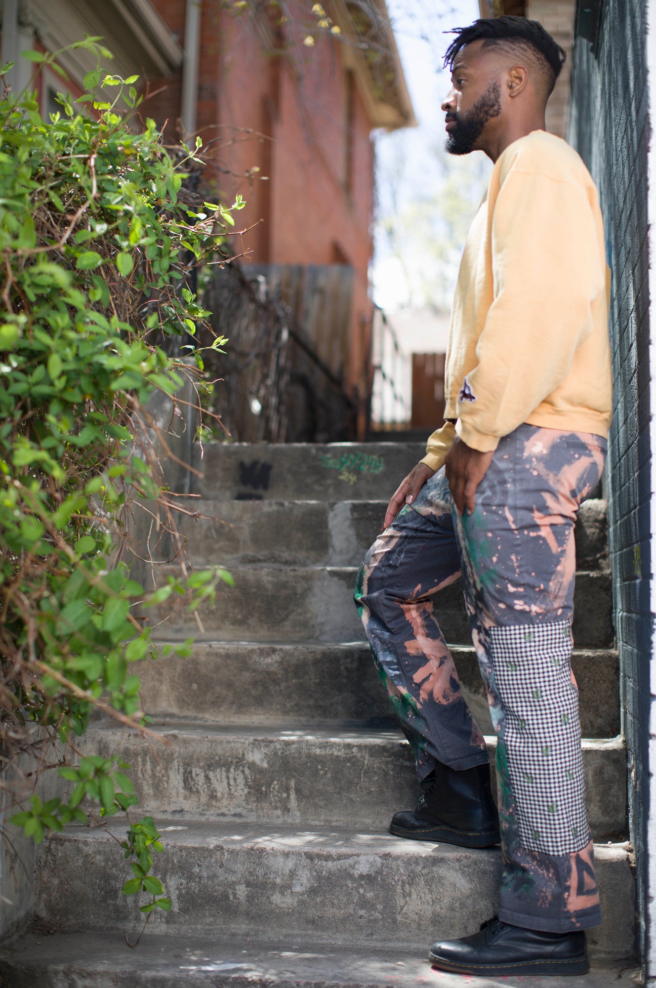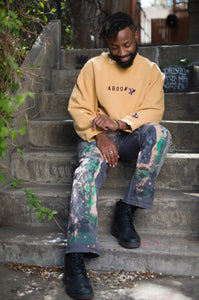 Upcycled Vintage Cotton Twill Pant. Handpainted and sewn by Preston and James. Garment is one of a kind and features our custom Preston and James leather patch.