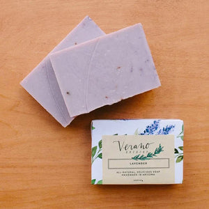 Lavender -Swirls of aromatic lavender buds, ribbons of purple Brazilian clay, and a generous splash of pure therapeutic lavender essential oil. This soap is not messing around when it comes to soothing and calming. Seriously.